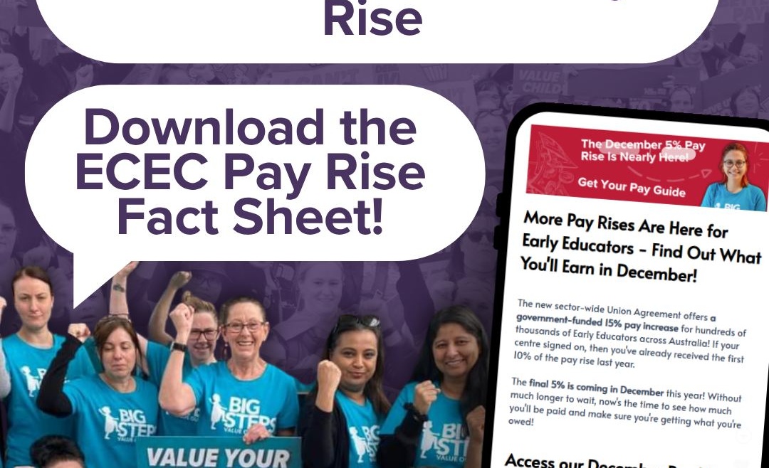 Early childhood educators are today welcoming the second stage of the Albanese Labor Government’s 15 per cent pay rise, with a Cert III-trained educator seeing a pay boost of $11,000 annually.
