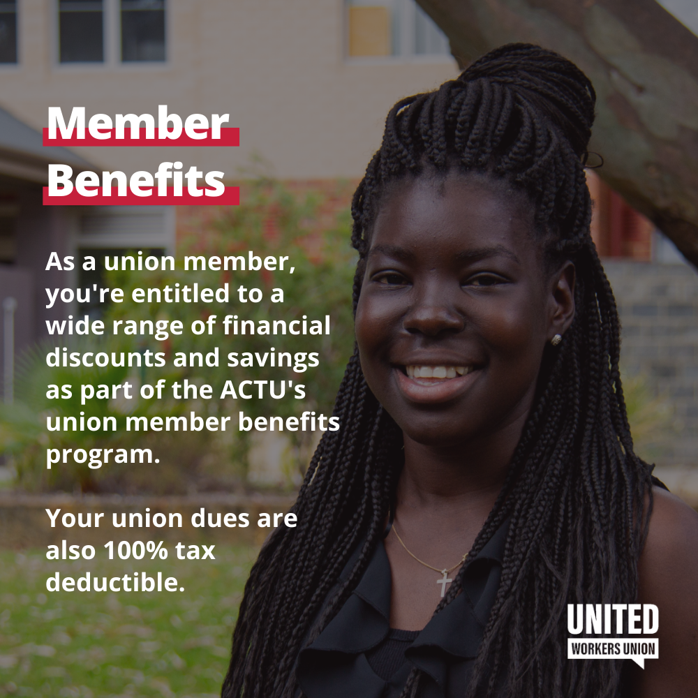 Your union fees are 100% tax deductible which means that at the end of every financial year, you can claim your union fees as a deduction.