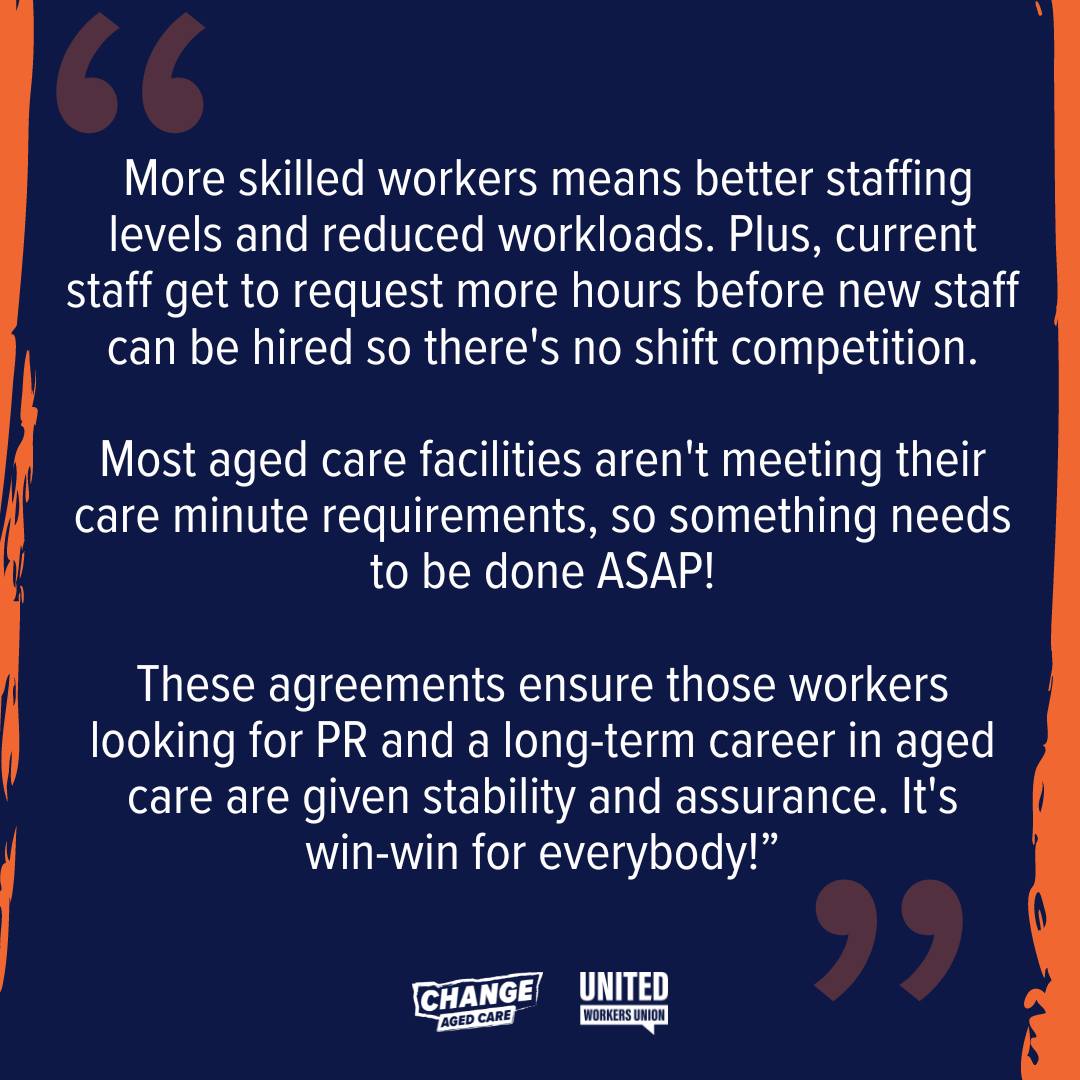Only aged care employers who have partnered with the union and negotiated a Labour Agreement are eligible to sponsor workers under this program.