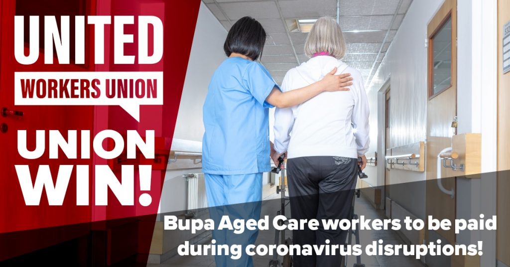 “United Workers Union wrote to Aged Care providers putting our demand for an extra two weeks paid leave for Aged Care workers, because they need their employers’ support if they are going to keep providing quality care,” Carolyn Smith, United Workers Union National Aged Care Director, said today.