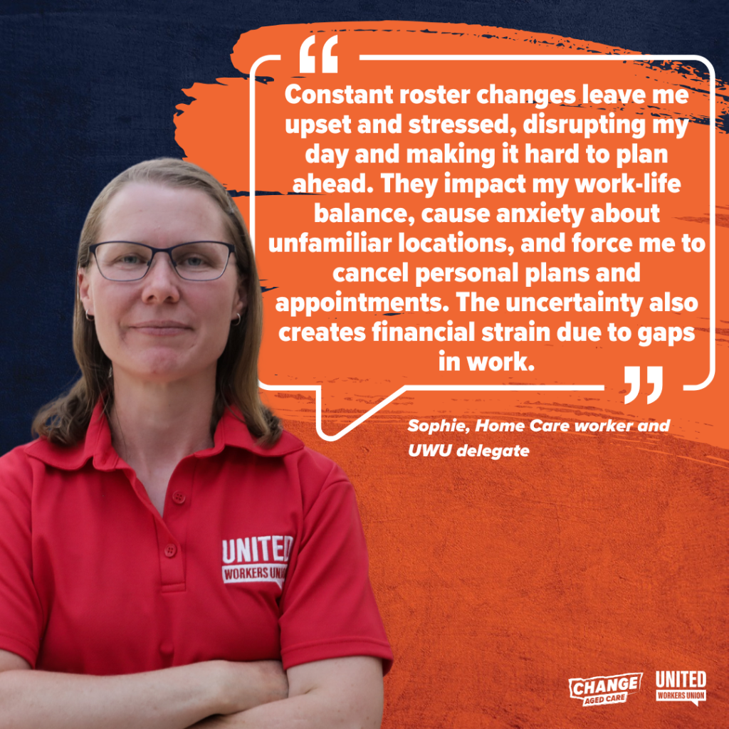 Home care workers face constant last-minute roster changes, creating stress and chaos.
