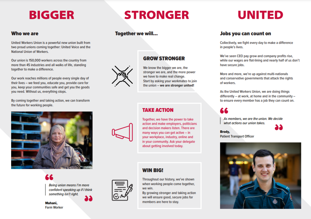 Download the A4 Bigger, stronger, united flyer for your workplace here. Download the A4 Bigger, stronger, united flyer for professional printing here.