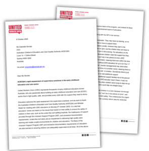 Educators welcome the rapid assessment into supervision practices, and we want to thank the Australian Children’s Education and Care Quality Authority (ACECQA) and Minister Walsh for meeting with UWU educators on Monday 6th October 2025